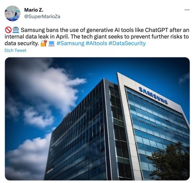 Chính sách hạn chế việc sử dụng công cụ AI được đưa ra sau khi Samsung phát hiện một số nhân viên công ty đã "rò rỉ mã nguồn nội bộ thông qua việc tải nó lên ChatGPT".