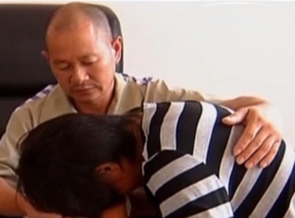 Sa Thiên Bành ôm con trong lần gặp trong tù. Ảnh: Toutiao