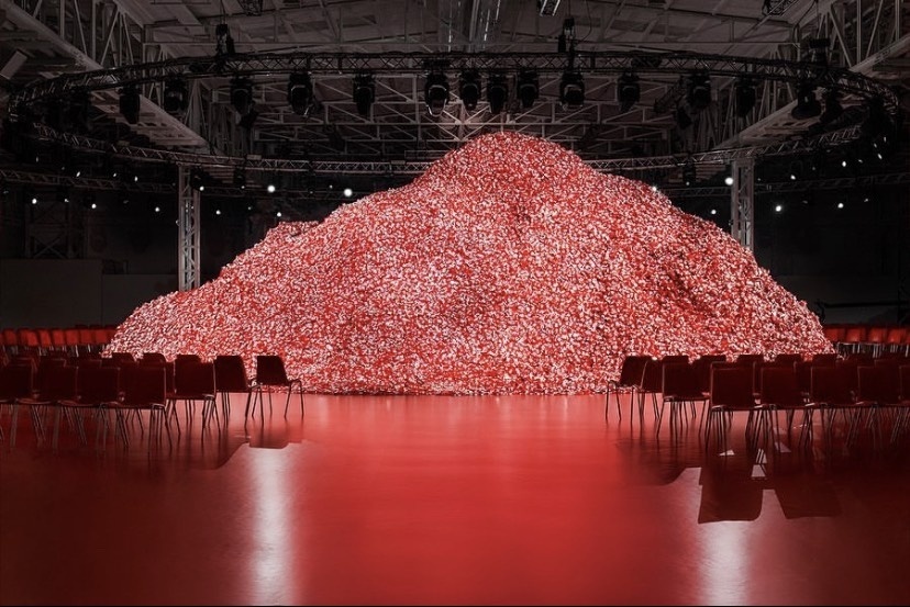 Diesel trang trí sân khấu bằng 200.000 chiếc bao cao su, gây ấn tượng với giới mộ điệu. Ảnh: AP Photo.