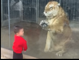 Old  Default Bé trai 'đánh nhau' với hổ khổng lồ qua cửa kính và cái kết