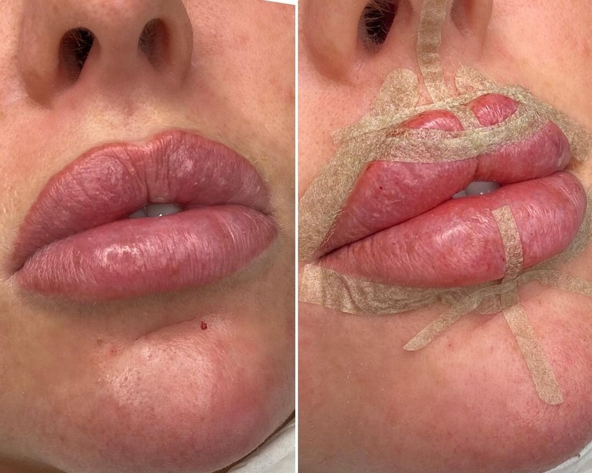 Trong lúc thực hiện, chuyên gia y tế cũng sử dụng băng dính dán xung quanh nhằm tạo hình viền môi. Miếng băng này có thể được dán trước hoặc sau quá trình tiêm, giữ nguyên trong vài ngày.