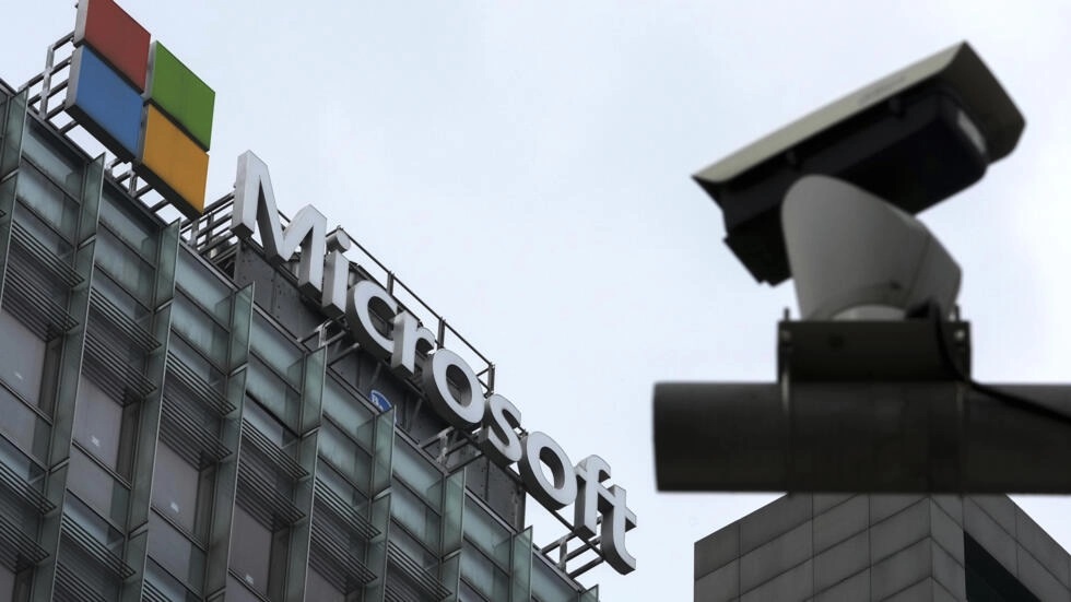 Camera giám sát ở gần văn phòng của Microsoft ở Bắc Kinh, Trung Quốc, ngày 20/07/2021. © AP - Andy Wong