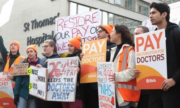 Ngày 22/5, Hiệp hội y khoa Anh (BMA), tổ chức công đoàn bảo vệ quyền lợi của nhân viên y tế, đã thông báo rằng các bác sỹ trẻ sẽ ngưng việc trong vòng 72 giờ từ 7 giờ sáng ngày 14/6 đến 7 giờ sáng ngày 17/6.