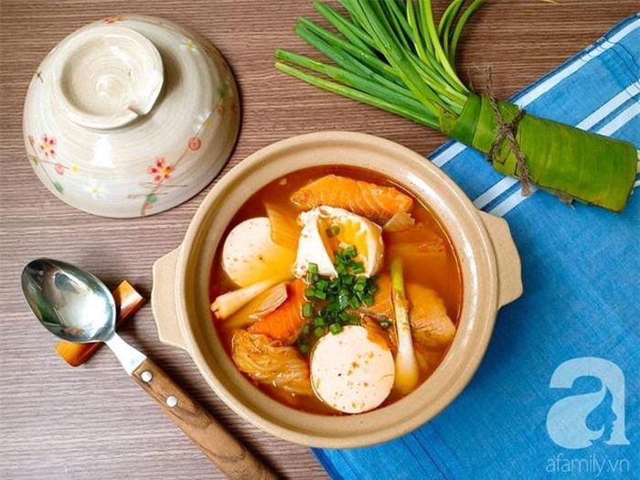 Lâu lâu 'ăn sang' một bữa, nấu canh cá hồi kim chi mời cả nhà ăn tối bạn nhé!