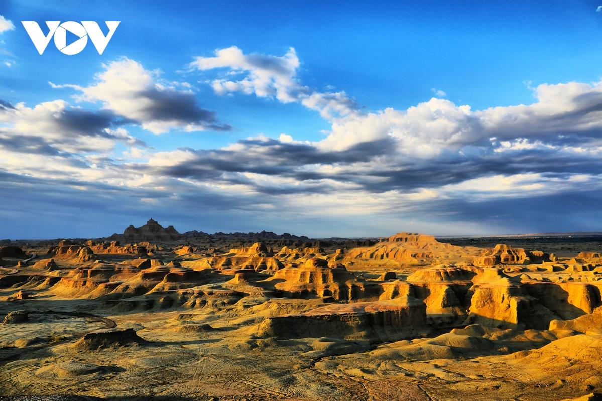 “Thành phố Ma quỷ” ở Karamay – nơi ghi dấu các bộ phim cổ trang Trung Quốc. Khu thắng cảnh này có tổng diện tích 260 km2, trong đó riêng vùng lõi địa hình Yardang là 22 km2, gồm tập hợp của nhiều loại hình cảnh quan thiên nhiên độc đáo như địa hình Yardang Gobi, hẻm núi sa mạc, ráng mây ngũ sắc lúc bình minh hay ảo ảnh sa mạc...
