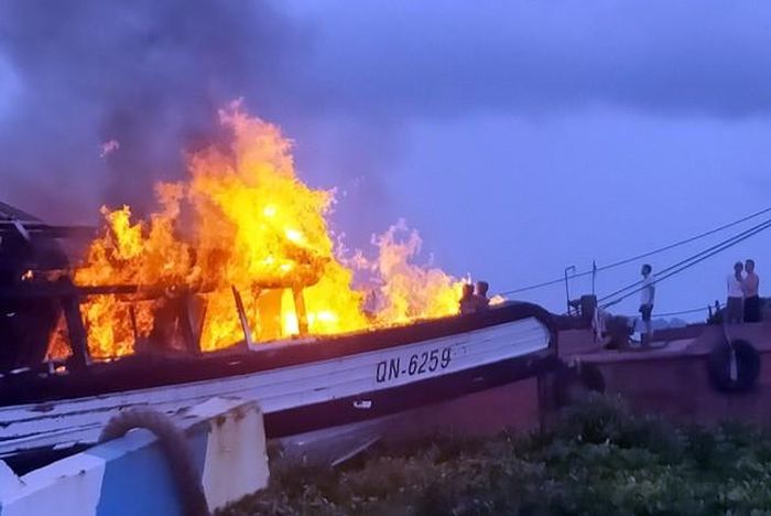 Ngay khi phát hiện cháy, các thuyền viên đã nhanh chóng rời tàu và được đưa đến trụ sở UBND xã Phù Long an toàn.