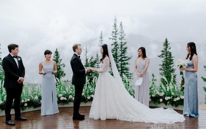 "Khoảng 2 tiếng trước giờ tiến hành hôn lễ, sương mù còn chưa tan hết trên đỉnh núi Aspen. Trời có mưa nữa. Chúng tôi đã lường trước điều này và chuẩn bị ô cho từng khách mời. Dẫu vậy, tôi vẫn thầm cầu nguyện với hy vọng không ai cần bật ô trong khi tiến hành hôn lễ" - cô dâu Annie kể lại.