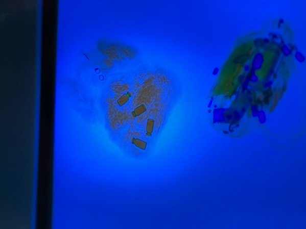 Hải quan lại một lần nữa soi hành lý và phát hiện ra nằm trong một túi nilon. Hải quan tiếp tục soi túi nilon và quả thật thấy 4 lọ nằm trong đó.
