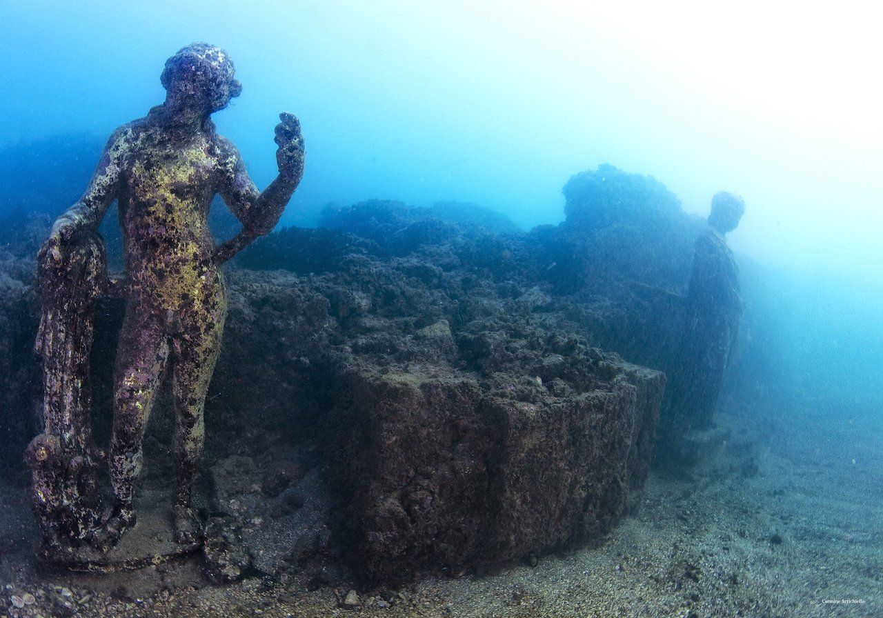Những pho tượng cổ chìm xuống đáy biển cùng với "thành phố tội lỗi" Baiae của La Mã cổ đại. Ảnh: Scobadiving