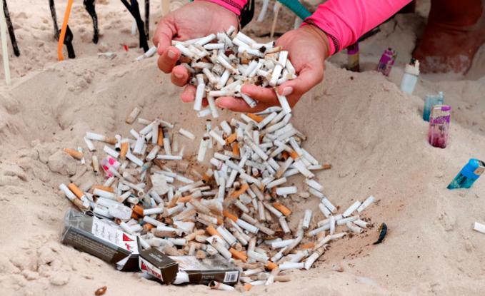 Đầu lọc thuốc lá được các tình nguyện viên thu thập bãi biển tại Israel vào tháng 10/2020. Ảnh: Guardian