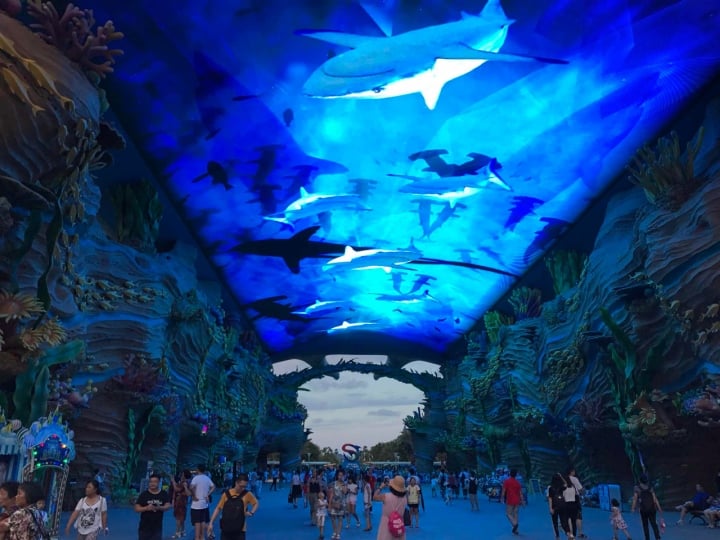 Nơi đây được chia thành 10 khu tham quan trải nghiệm theo chủ đề, tổng chiều dài tuyến tham quan khoảng 5 km, trưng bày hơn 100.000 loài động vật biển quý hiếm, có thể đón hơn 50.000 khách du lịch mỗi ngày.