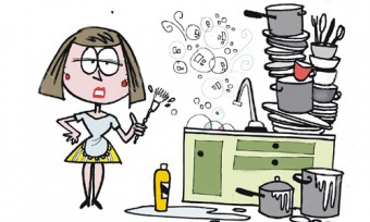 Tiệc tùng xong, vợ ở trong bếp mồ hôi nhễ nhại, bên cạnh lù lù một đống bát đĩa bẩn, ông chồng đi vào nói: