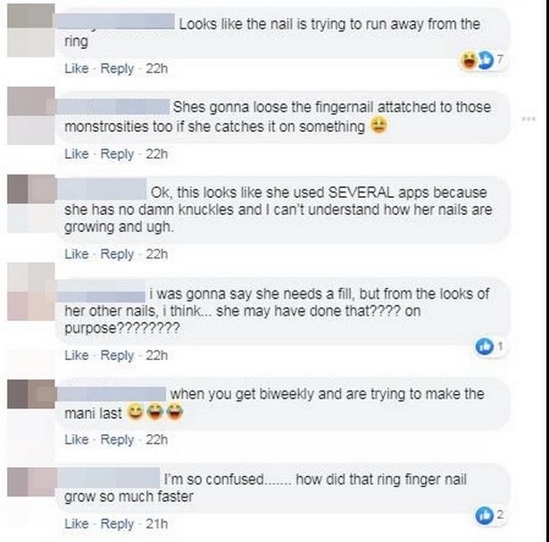 Một người khác cho rằng tấm ảnh trông không thật vì bộ nail quá tệ: "Rõ ràng là ảnh chỉnh sửa, nếu móng tay của cô ấy mọc nhanh như thế thì nó đã bị bong tróc hết rồi".