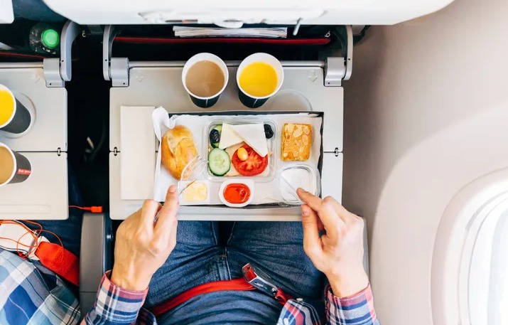 Theo chuyên gia dinh dưỡng Vanessa Rissetto (Mỹ), sự thay đổi áp suất khiến một số hành khách bị thiếu nước trong suốt chuyến bay; các món ăn có hàm lượng natri cao có thể làm nặng thêm chứng đau đầu liên quan đến mất nước, táo bón hoặc mệt mỏi. Để đối phó với tình trạng này, bà Vanessa khuyên dùng một số viên điện giải hoặc nước dừa để bù nước, ăn các loại rau, trái cây hoặc đồ ăn giàu protein để cảm thấy khỏe khoắn.