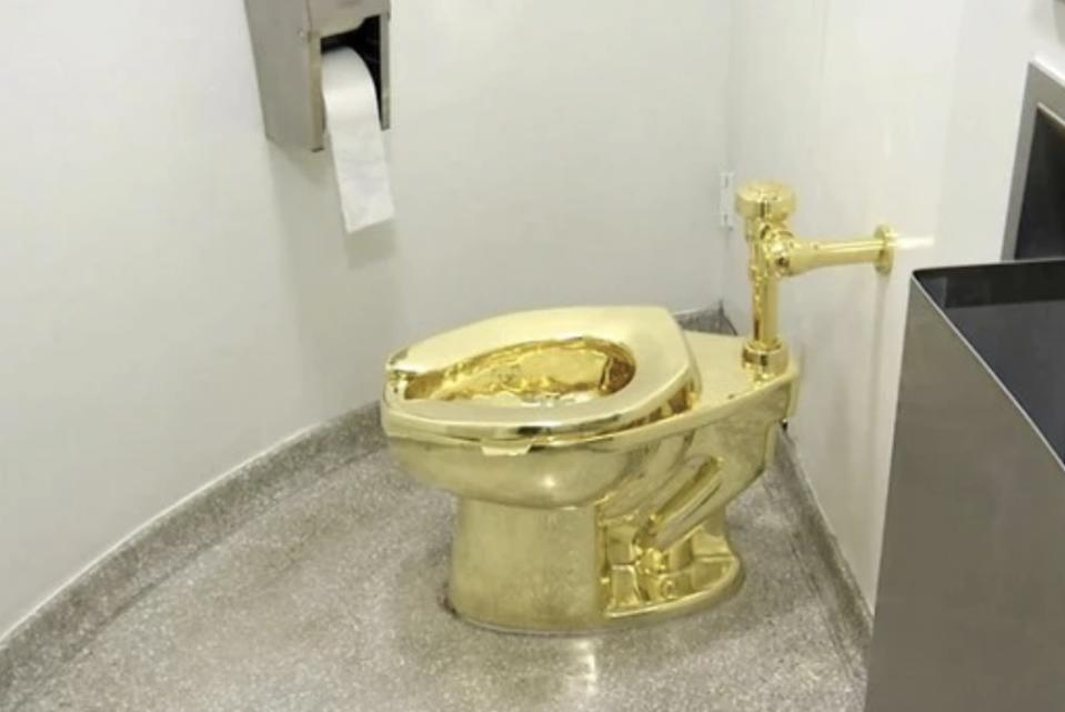 Theo hãng tin AP, chiếc bồn cầu bằng vàng trị giá 4,8 triệu bảng Anh (5,95 triệu USD) này mang tên "America", là một tác phẩm của nghệ sĩ ý tưởng người Ý Maurizio Cattelan. Nó được tạo ra với mục đích châm biếm sự giàu có quá mức.