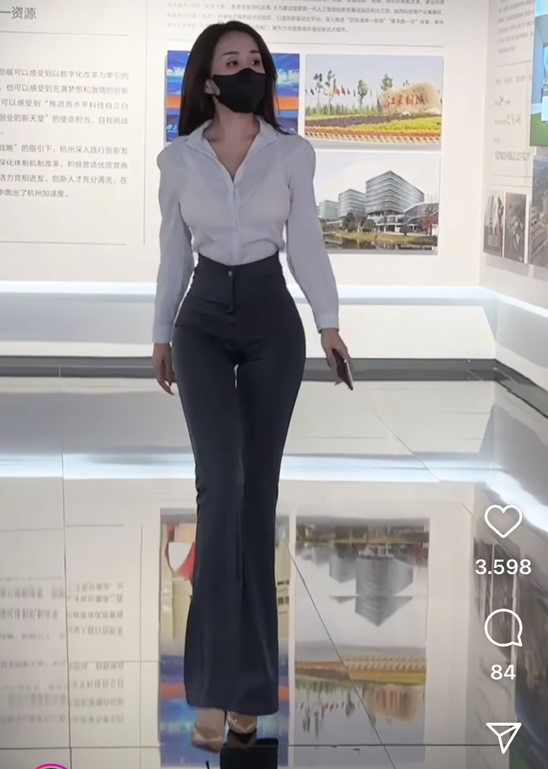 Các trang mạng đăng tải clip của một nữ thư ký thu hút nhiều sự chú ý. Cô nàng diện áo sơ mi, cùng quần âu khoe khéo đường cong hình chữ S. Bộ trang phục kín đáo, thanh lịch cùng độ ôm vừa vặn giúp cô gái nhận được nhiều lời khen ngợi của cư dân mạng.