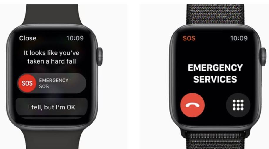Những loại đồng hồ thông minh hiện nay đều trang bị rất nhiều công dụng chăm sóc sức khỏe người dùng. Một trong số đó, là hệ thống báo động khi người dùng bị té, ngã. Đây là tính năng được đánh giá rất cao và thường được nhiều người mua về để cho người thân trong gia đình sử dụng, nhất là người cao tuổi. Theo đó, sẽ có một cuộc gọi khẩn cấp đến các cơ quan chức năng nếu người dùng té ngã nhưng quá 1 phút vẫn không thể thao tác vào câu lệnh "I'm OK" được cài đặt sẵn