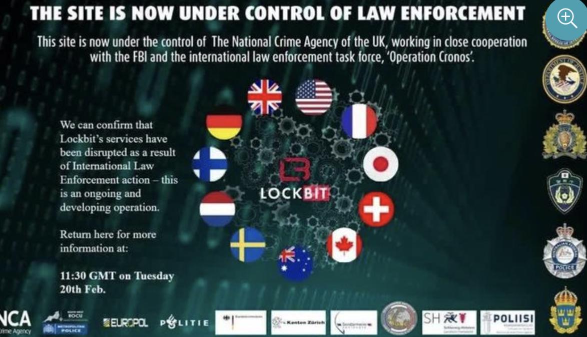 Theo CNN, liên minh cảnh sát quốc tế bao gồm Cơ quan Phòng chống Tội phạm Quốc gia Anh (NCA), Cục điều tra Liên bang Mỹ (FBI) và Cơ quan Cảnh sát Liên minh châu Âu (Europol) đã tịch thu trang web đen được nhóm tội phạm mạng chuyên bắt cóc dữ liệu đòi tiền chuộc LockBit sử dụng để tống tiền nạn nhân.