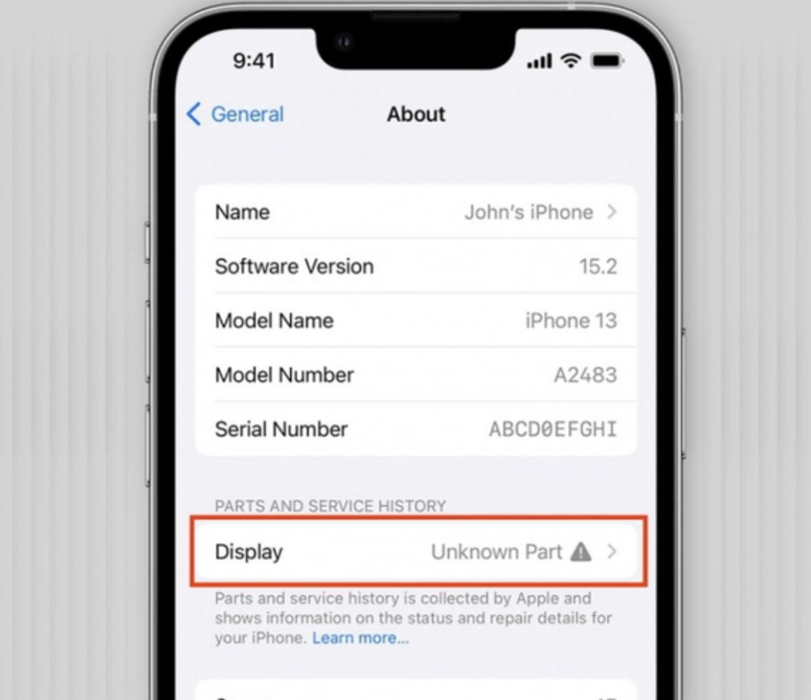 Quan trọng hơn, các linh kiện đã qua sử dụng hay còn gọi là "bóc máy" (linh kiện lấy từ những chiếc iPhone khác) cũng được coi là "linh kiện không xác định".