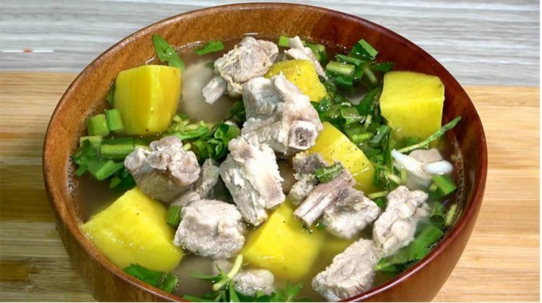 Món canh khoai lang hầm xương hoàn thành dễ dàng chỉ với vài thao tác chế biến. Món ăn có vị ngon, ngọt thanh của nước dùng, khoai lang mềm, bùi, thơm. Với món ăn này bạn hoàn toàn có thể dùng như một món ăn giảm cân, hoặc thưởng thức cùng cơm đều được.