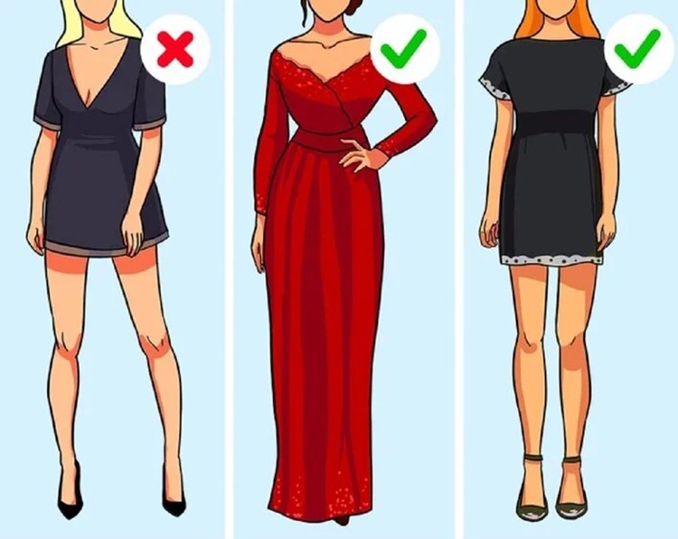 Quy tắc để trở nên sang trọng là chỉ nên tập trung nhấn mạnh vào một đặc điểm của trang phục. Nếu muốn làm nổi bật đôi chân thon dài bằng chiếc váy ngắn thì ở phía trên nên mặc một chiếc áo an toàn với điểm nhấn là đường viền trên cổ áo. Còn nếu muốn khoe vòng một, cần diện một chiếc váy dáng dài.