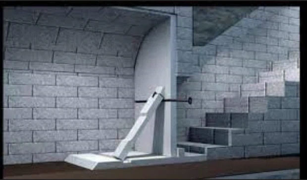 Những người thợ đã dùng phương pháp này để tránh khỏi kết cục bi thảm bị chôn sống trong lòng đất. Vào thời đó, người ta đã biết cách lợi dụng trọng lực, đồng thời cũng đã có thể ước tính sơ bộ tốc độ và thời gian rơi của khối đá nên đã giúp họ nhanh chóng thoát khỏi lăng mộ dưới lòng đất.