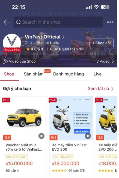 Đây là lần đầu VinFast hay một hãng xe bán một ô tô ngay trên sàn thương mại điện tử Shopee. Trước đó, VinFast mới chỉ bán đồ lưu niệm, xe máy, thiết bị sạc hay mô hình trên Shopee.