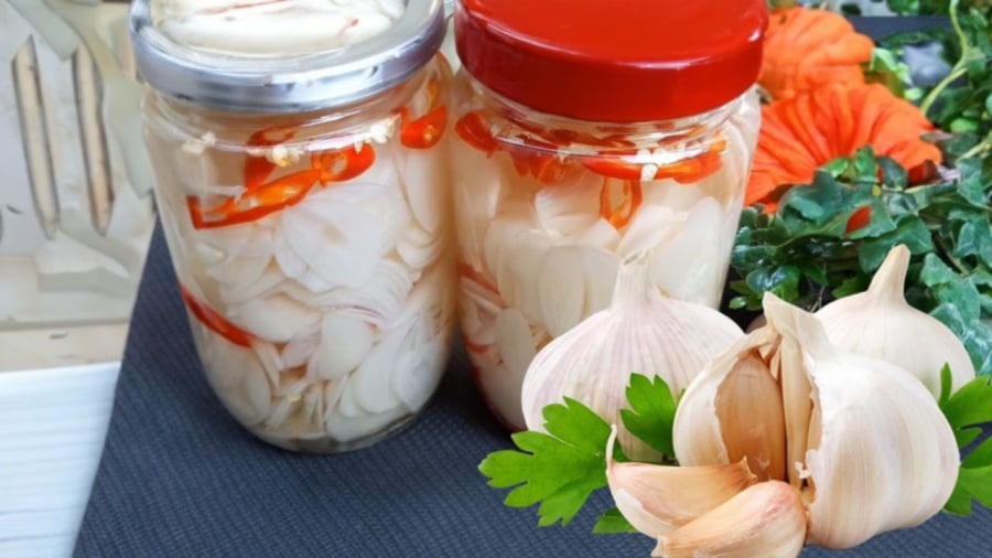 Bí kíp ngâm tỏi giấm ớt không bị xanh, tỏi trắng giòn, nước trong
