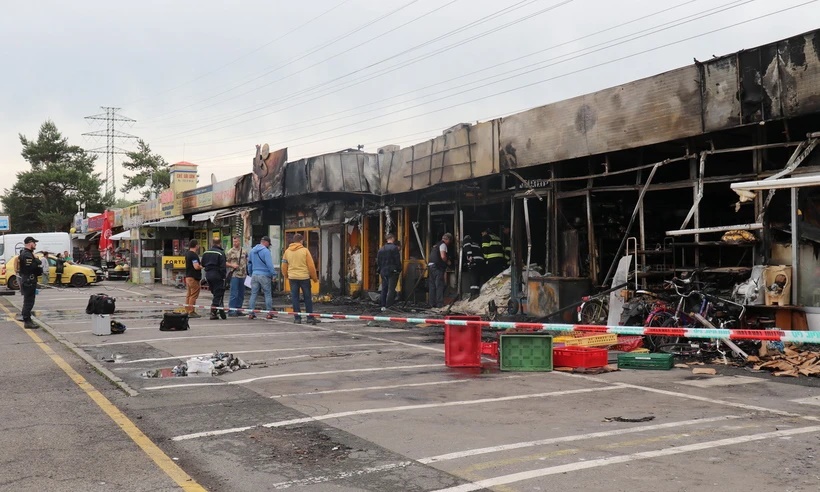 Hiện trường vụ cháy tại Trung tâm thương mại Sapa của người Việt Nam tại Prague, Cộng hòa Czech, rạng sáng 10/6. Ảnh: TTXVN