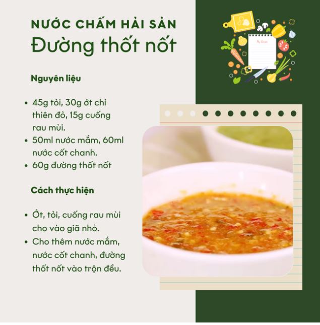 Ngay cả những bạn mới tập tành vào bếp hay tự nhận mình "vụng" nhất cũng có thể trở thành "đầu bếp" trong chớp mắt. Từ nước chấm chua cay đầy kích thích, đến hương vị thanh mát của rau mùi, tất cả sẽ làm tôn lên vị ngọt tự nhiên của hải sản, đảm bảo bữa ăn gia đình bạn sẽ trở nên ngon miệng và đáng nhớ. Chuẩn bị nguyên liệu thôi nào, và chúng ta sẽ bắt đầu cuộc hành trình biến hóa hương vị đầy thú vị!