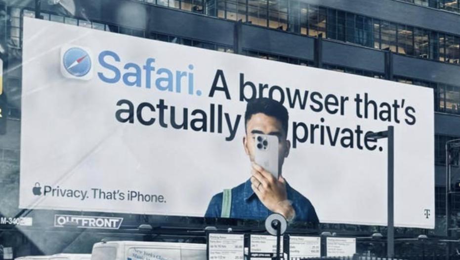 Biển quảng cáo của Apple tại New York đề cập đến quyền riêng tư, khuyến khích người dùng ngừng sử dụng trình duyệt Google Chrome. Ảnh: UKZAK