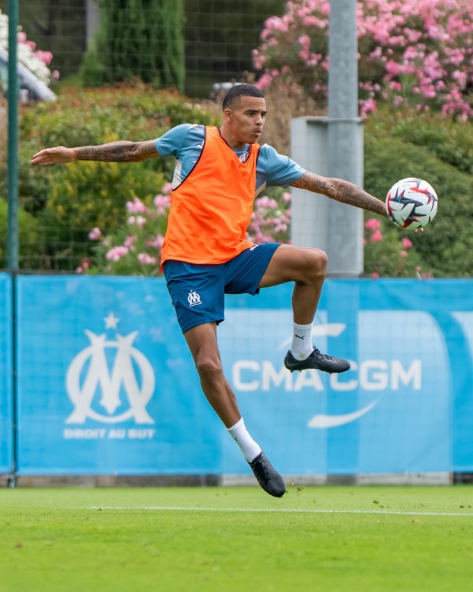 Greenwood ra sân tập cùng Marseille buổi đầu tiên ngay sau cuộc họp báo ra mắt. Ảnh: OM