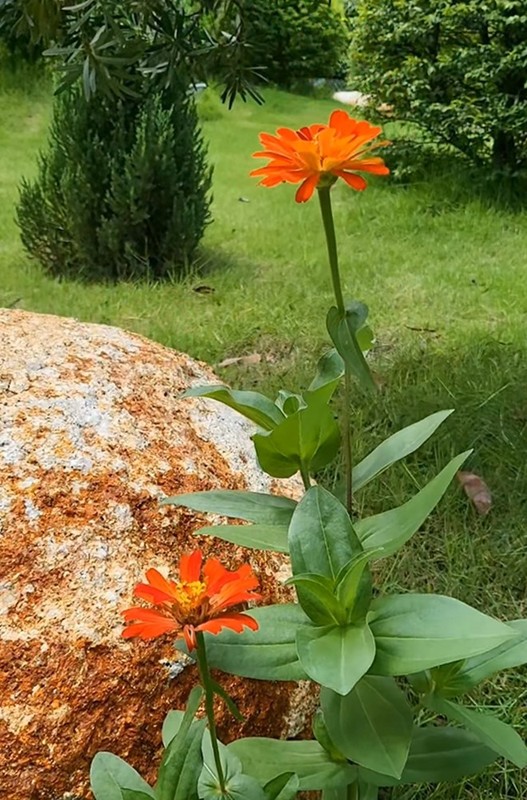Bên cạnh đó, trong vườn nhà Việt Trinh còn có nhiều loài hoa khác. Những bông cúc màu cam nổi bật bên tảng đá lớn. Những bông hoa đủ sắc màu cho không gian thêm sống động và bắt mắt.