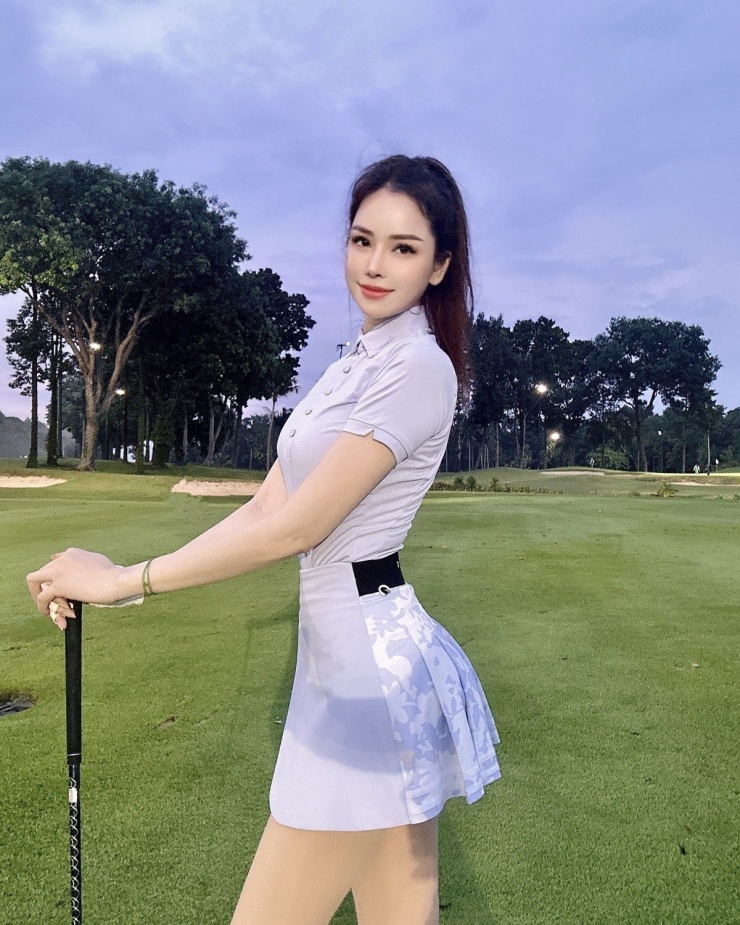 Vốn yêu thích thời trang, cựu người mẫu đầu tư trang phục chỉn chu mỗi lần 'đọ gậy' cùng bạn bè. Người đẹp thường xuyên chưng diện những trang phục ít trùng lặp và chụp hình trên sân.