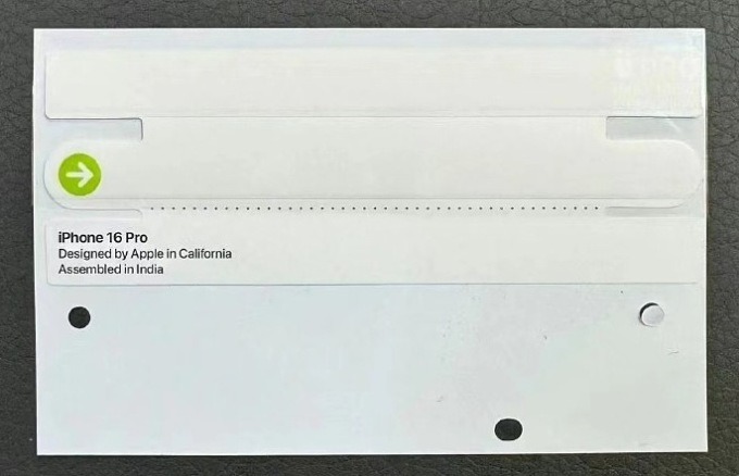 Hình ảnh nhãn dán kiêm seal bảo vệ hộp, được cho là của iPhone 16 Pro, được tài khoản Tipster OvO đăng trên mạng xã hội Weibo ngày 21/8. Trong đó, nơi sản xuất sản phẩm là Ấn Độ thay vì Trung Quốc như các thế hệ cũ. Trước đây, nước này chỉ sản xuất dòng iPhone thường như iPhone 14, iPhone 15 và 15 Plus.