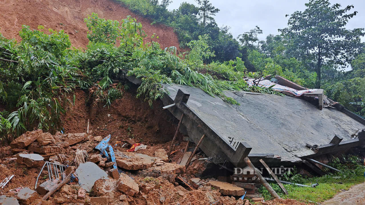 Nhìn khung cảnh hiện trường, chúng tôi càng cảm nhận rõ sự xót xa, đau đớn của ông Sộm. Căn nhà xây dựng kiên cố giờ chỉ còn lại đống đổ nát lẫn bùn đất. Đằng sau ngôi nhà bị sập là một vệt sạt lớn vẫn còn hiện hữu.