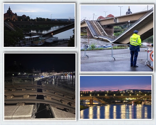 Dresden – Đột nhiên có một tiếng nổ chói tai. Cầu Carola ở Dresden bị sập vào lúc nửa đêm. Một phần cây cầu nối khu phố cổ lịch sử với thị trấn mới bị sập xuống nước.
