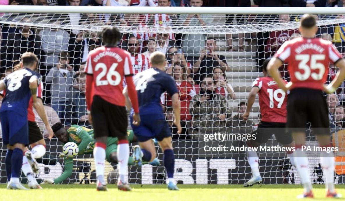 Số cơ hội mà 2 đội tạo ra trong nửa đầu hiệp một là ngang nhau. Bước ngoặt tưởng như sẽ đến vào phút 33 khi Southampton được hưởng quả penalty. Nhưng tiền đạo Archer đã khiến người hâm mộ đội chủ nhà phải thất vọng. Cú sút đầu tiên quá hiền và không thắng được thủ môn Onana. Bóng bật ra đến đúng vị trí của Archer, chân sút này lại đánh đầu bồi thẳng vào tay Onana.