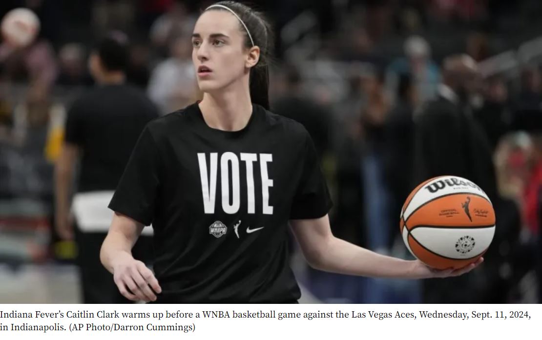 Kể từ khi nổi tiếng, nữ vận động viên siêu sao này đôi khi được nhắc đến trong các cuộc tṛ chuyện chính trị. Đầu năm nay, Clark cho biết thật "thất vọng" khi người dùng trực tuyến sử dụng tên của cô để đăng các b́nh luận phân biệt chủng tộc và kỳ thị phụ nữ nhắm vào những cầu thủ WNBA khác.