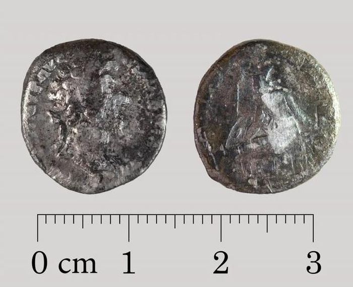 Nhà khảo cổ học Uta Halle cho biết đồng xu cũ kỹ này nặng 2,4 gram và được đúc trong "thời kỳ tiền xu xuống cấp" khi Đế chế La Mã giảm hàm lượng bạc trong tiền tệ do hậu quả trực tiếp của lạm phát.