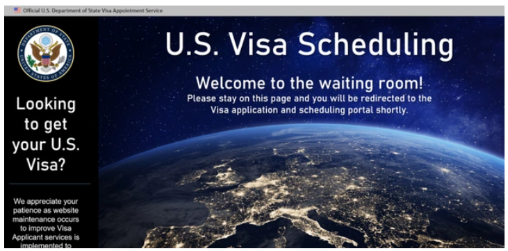 Thứ nhất, để đăng nhập vào hệ thống, hãy truy cập trang web https://www.usvisascheduling.com/ và chờ được chuyển sang trang "Nộp đơn xin thị thực Hoa Kỳ".