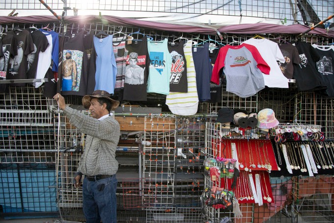 Chủ cửa hàng quần áo Carlos Reyes bên ngoài gian hàng của mình ở chợ Broadacres, Las Vegas, Nevada ngày 11/10. Ảnh: AFP