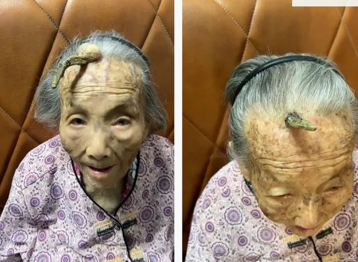 Con trai bà cụ, ông Wang Chaojun cho biết, ban đầu phần trán của bà Liang xuất hiện một thứ giống như nốt ruồi đen. Sau đó, nốt này nhô lên thành một cục u nhỏ như đầu ngón tay, không gây đau đớn.