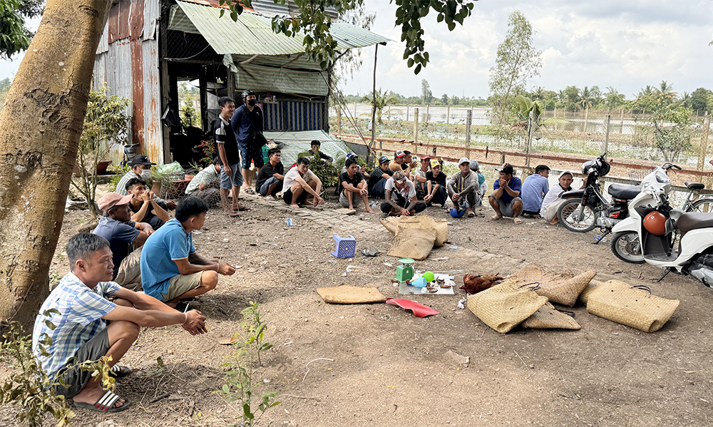 Vào thời gian trên, khi các đối tượng đang sát phạt nhau bằng hình thức đá gà ăn thua bằng tiền, tại một bãi đất trống cặp bờ kênh Mương Hội, (thuộc tổ 4, khóm Tây Khánh 6, phường Mỹ Hoà, TP.Long Xuyên), Tổ công tác thuộc Đội Cảnh sát hình sự Công an TP.Long Xuyên phốp hợp cùng các Đội nghiệp vụ và Công an phường Mỹ Hoà, bất ngờ ập vào, các đối tượng bỏ chạy tán loạn ra nhiều hướng nhằm thoát thân.