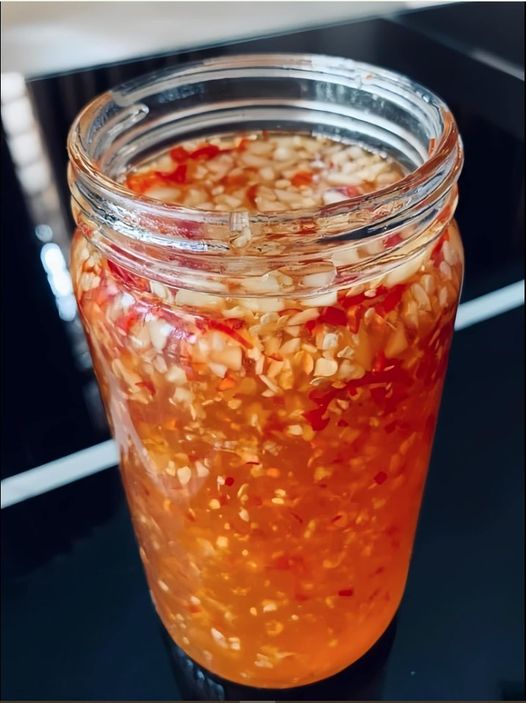 Chờ còn ấm ấm cho tỏi ớt băm vào quấy đều ( ko chờ nguội )