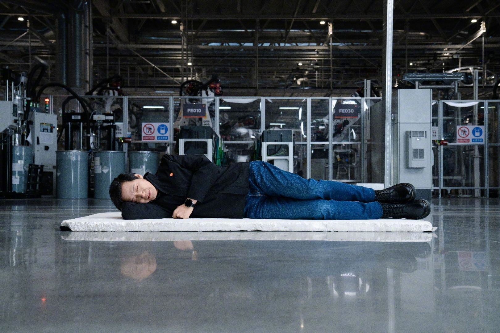 Bức ảnh CEO Xiaomi Lôi Quân nằm ngủ trên sàn nhà máy sản xuất xe điện