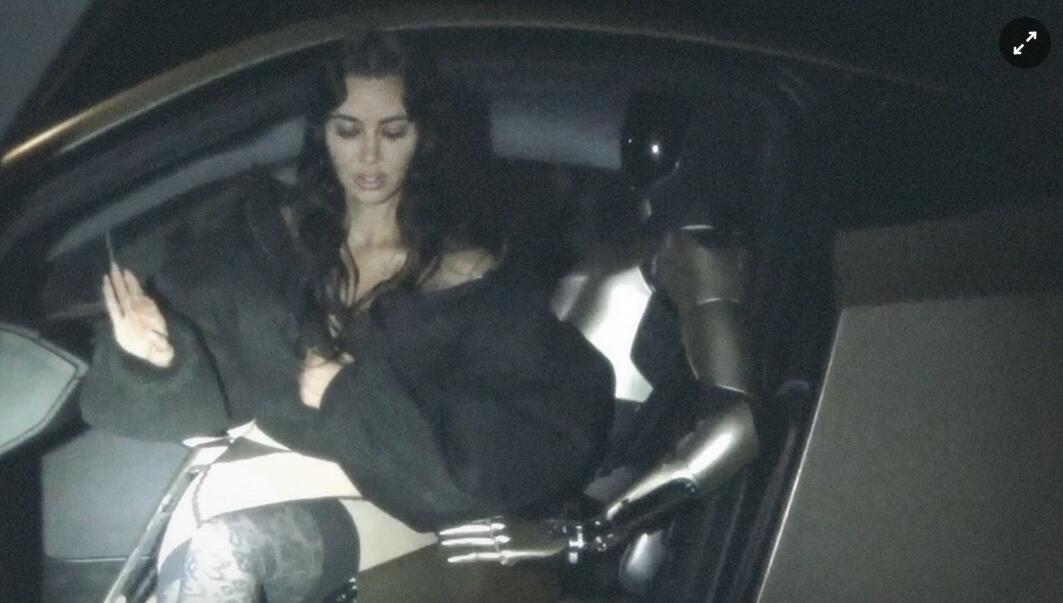 Kim Kardashian chụp cùng robot Optimus của Tesla trong bộ ảnh mới. Ảnh: X/Twitter.