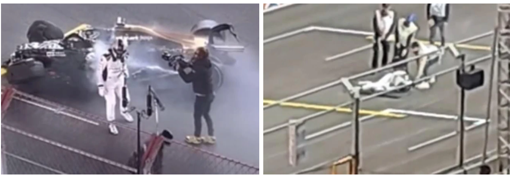Brad Pitt ngã quỵ trên đường đua F1 gây xôn xao mạng xã hội. Ảnh: X.