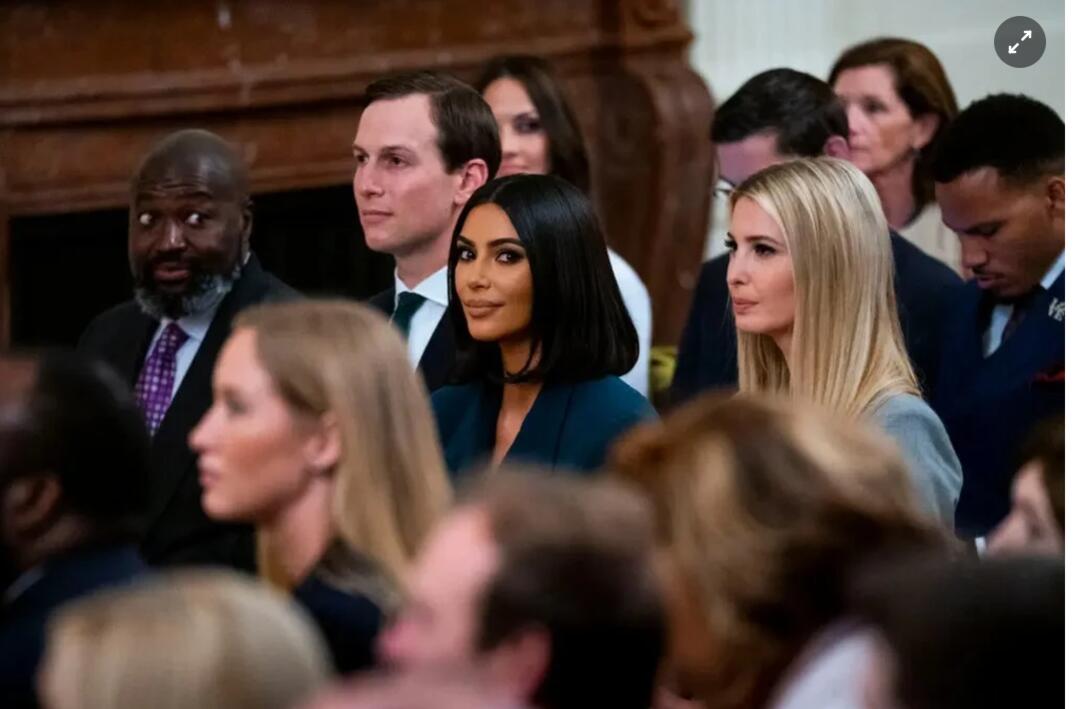 Kardashian cùng Jared Kushner và Ivanka Trump tại Nhà Trắng năm 2019 để nghe phát biểu của Tổng thống Donald Trump. Ảnh: New York Times.