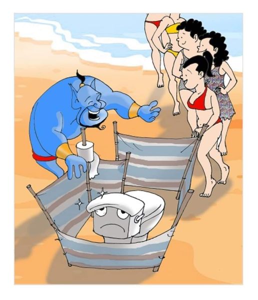 Thần Đèn phất tay. Một ánh chớp chóa lòa không trung. Chàng trai biến thành một... cái bồn cầu.